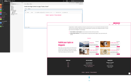 To use a manual footer, all you need to do is create a content element in the Content area of the footer page. To do this, click on the + Content button, just like you would when you are creating other subpages.