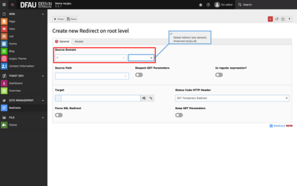 - Source Domain: This field is only relevant if you manage more than one domain within a TYPO3 back end.