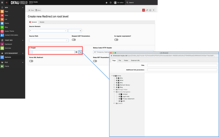- To do this, click on the link icon to open the link browser. Now, select the target of the redirect.