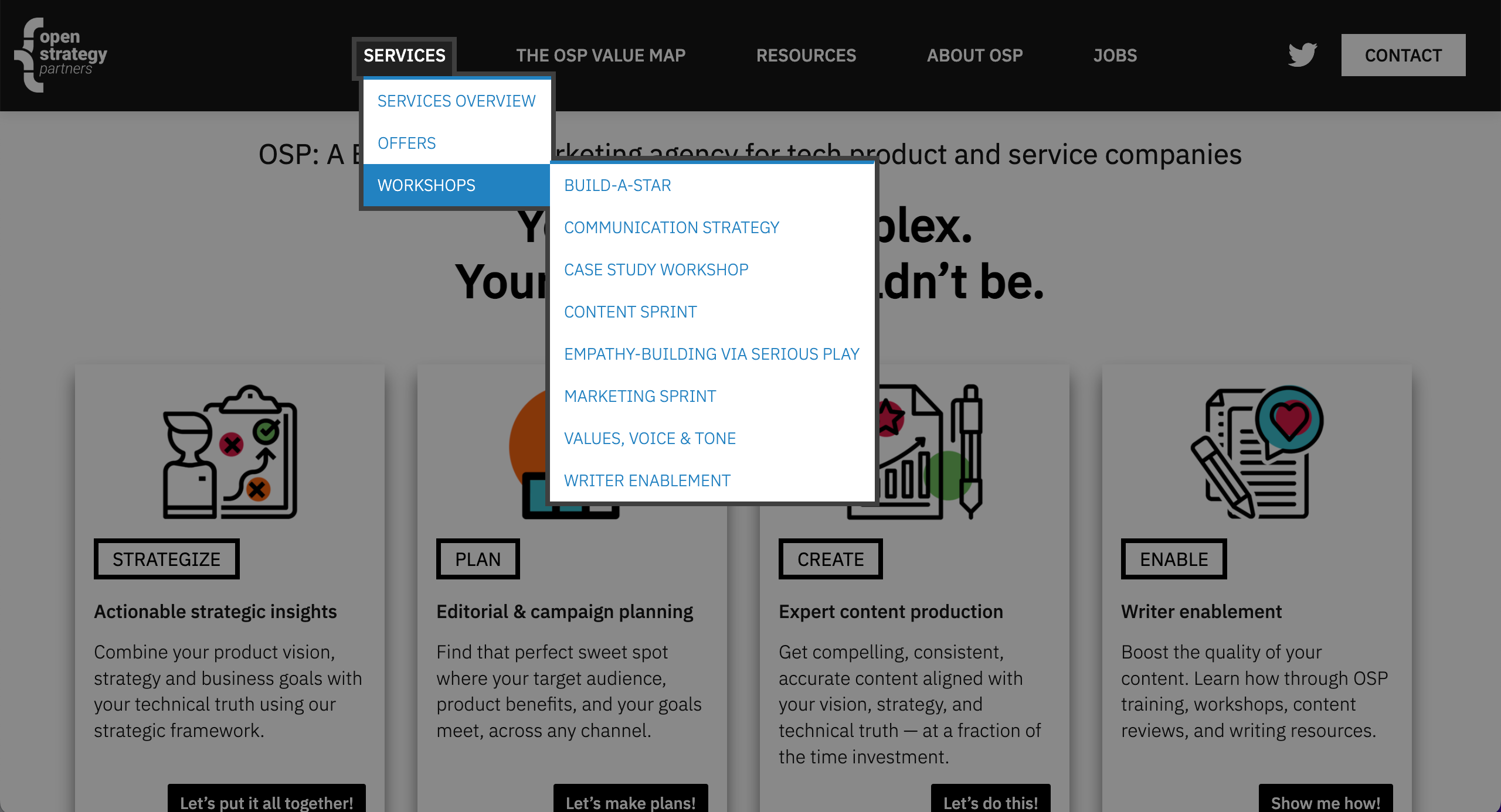 May 2023: To give room to the OSP Value Map, workshops are being sorted under services and are also undergoing a rebranding.